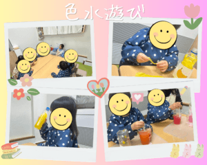 月末には、未満児さんのお友達とも色水遊びをするので、どんな反応をするのか今から楽しみです!